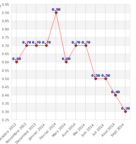 L’inflation est tombée à 0.30% sur un an (hors tabac), contre 1,7% deux ans plus tôt. Des économistes prévoient un nouveau ralentissement en décembre, qui servira de référence pour le calcul du taux. S’il se confirmait, le taux pourrait tomber à 0.75%, voire 0.50%... Au point où nous en sommes, autant gober une pomme.